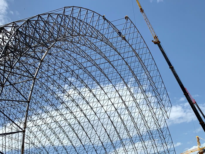 (2)网架加工前应对现场尺寸进行复测,确认无误后方可进行加工、安装;网架制作、运输、安装应遵守《空间网格结构技术规程》JGJ7-2010、《钢网架聊城螺栓球节点》JG/T 10-2009、《钢网架聊城螺栓球节点用高强度螺栓》 GB/T 16939-2016、《聊城钢结构聊城工程聊城施工规范》 GB50755-2012、《聊城钢结构聊城工程施工质量验收标准》 GB50205-2020。
